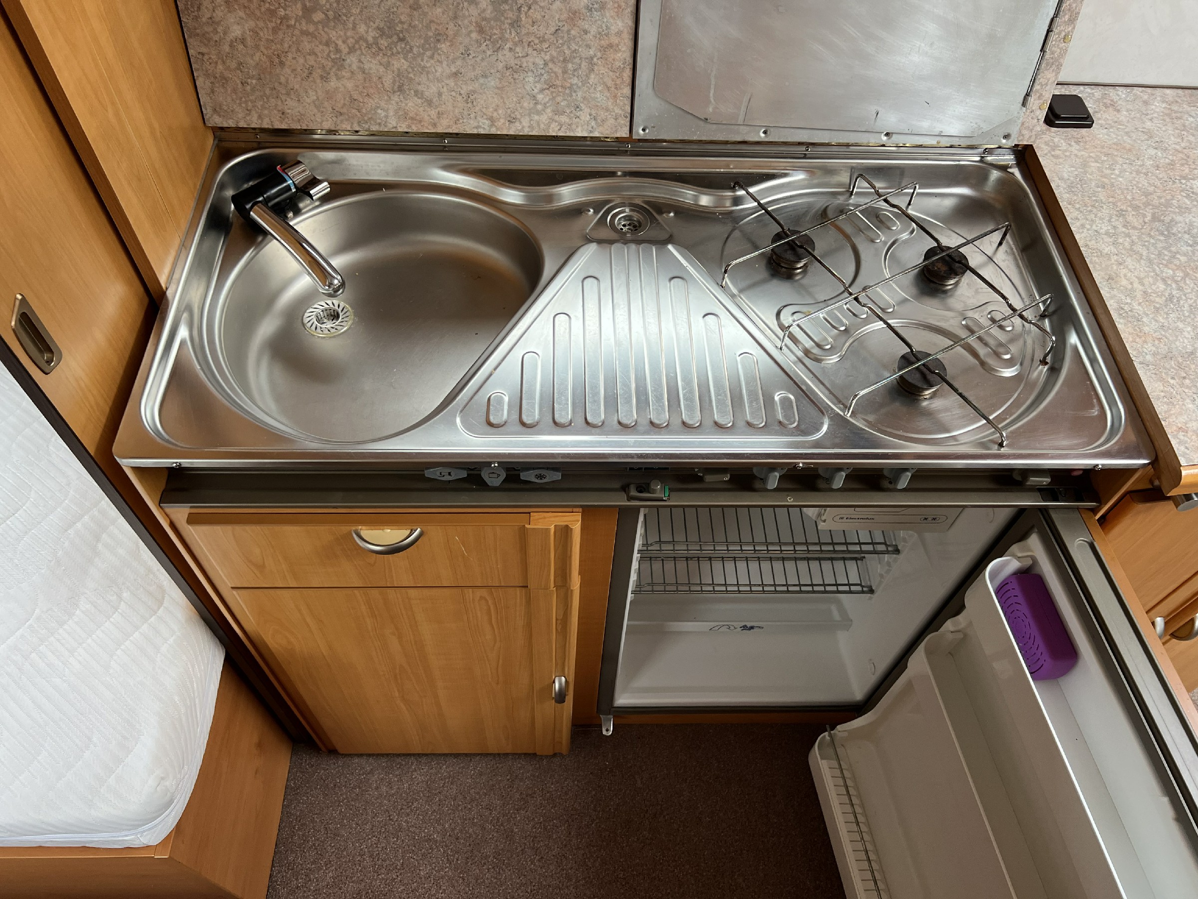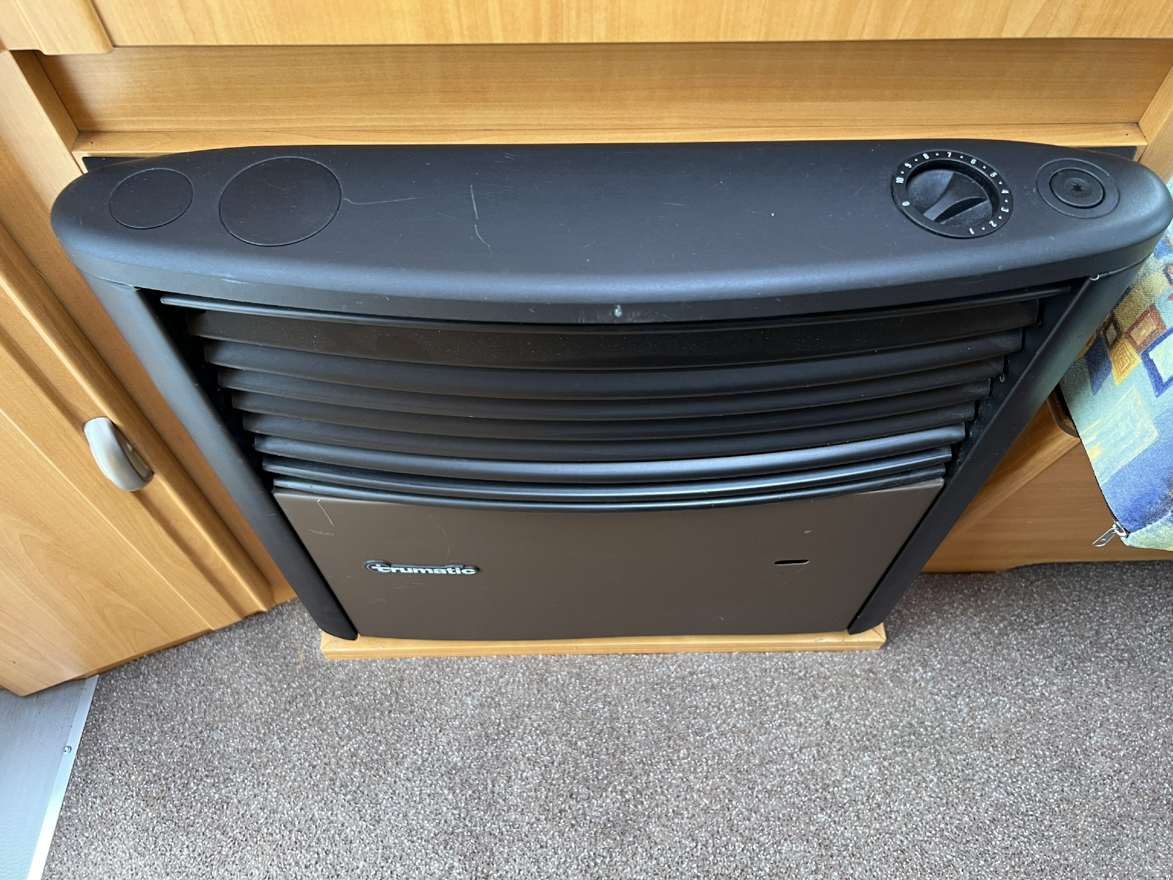 Vybaven je plynovým topením Trumatic s rozfukem, lednice trojkombinační, plynový sporák, dřez, velká vnitřní nádrž na vodu. Toaleta Thetford se sprchou, sítě proti hmyzu, termorolety, šatní skříň, velké Hekki okno.